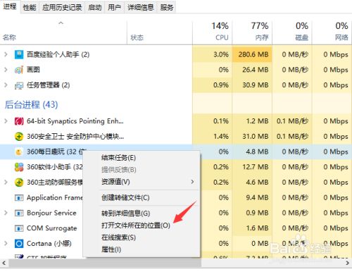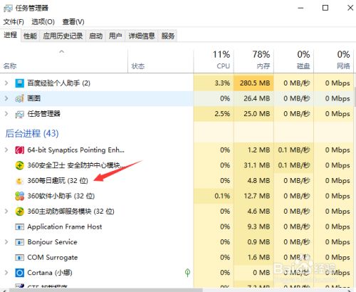在“后台历程”中找到“360每日趣玩”右击弹出菜单。