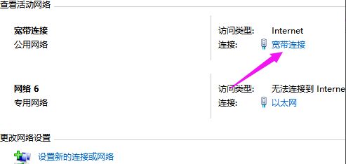 到了“收集和共享中间”,我们直接单击“宽带毗连”