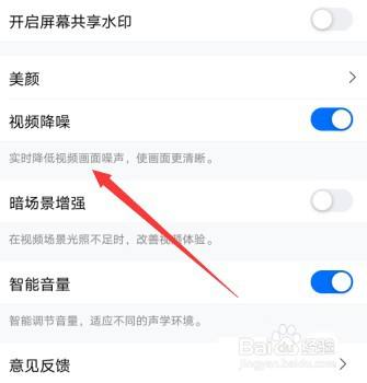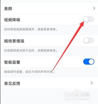 4、打开设置界面,鄙人方位置找到视频降噪选项。