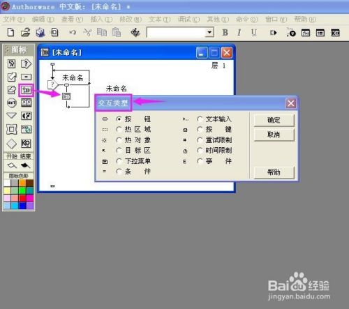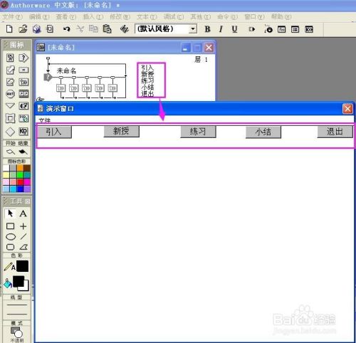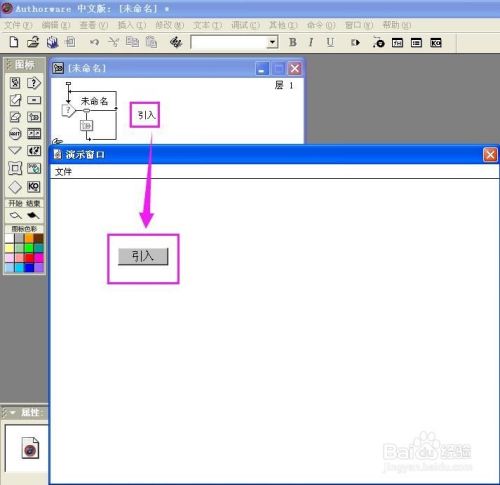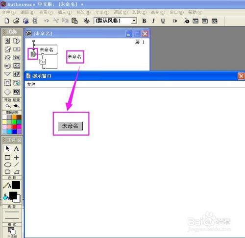 双击交互图标,在演示窗口呈现一个按钮,其名称为未定名;
