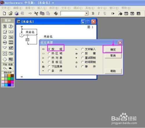将群组图标拉到交互图标的右侧,呈现交互类型对话框;