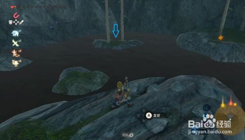 到位置可以发现水潭中有两棵松树的石头(中心的石头有个呀哈哈)