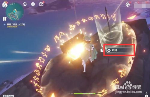 首先打开地图,按照下图的路线走到封印的镇石处;
