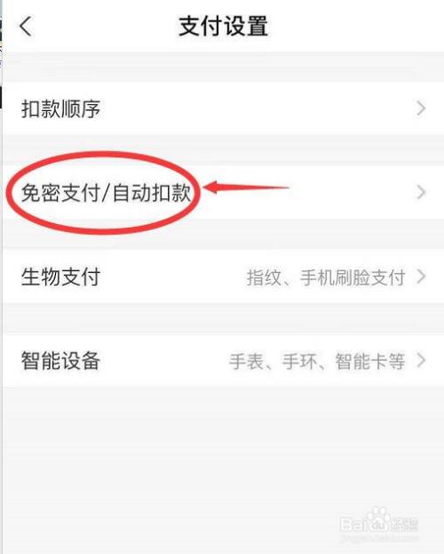 在支付设置界面,点击【免密支付/主动扣条目】。