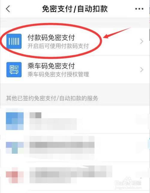 在免密支付/主动扣条目界面,点击需要开通免密支付的选项,这里以【付条目码免密支付】为例。