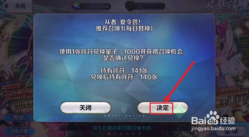 进入呼唤详情页面后,点击呼唤11次按钮。当然需要耗损圣晶石;之后点击决议按钮;
