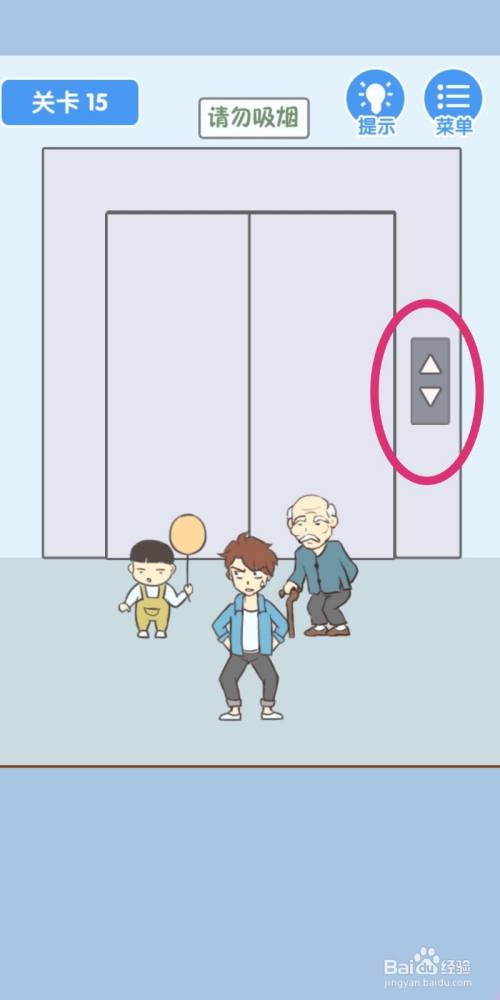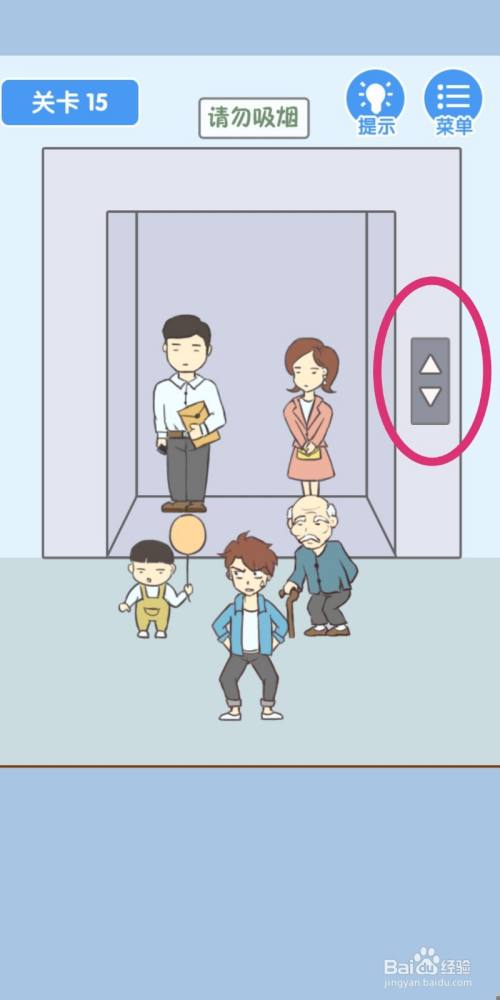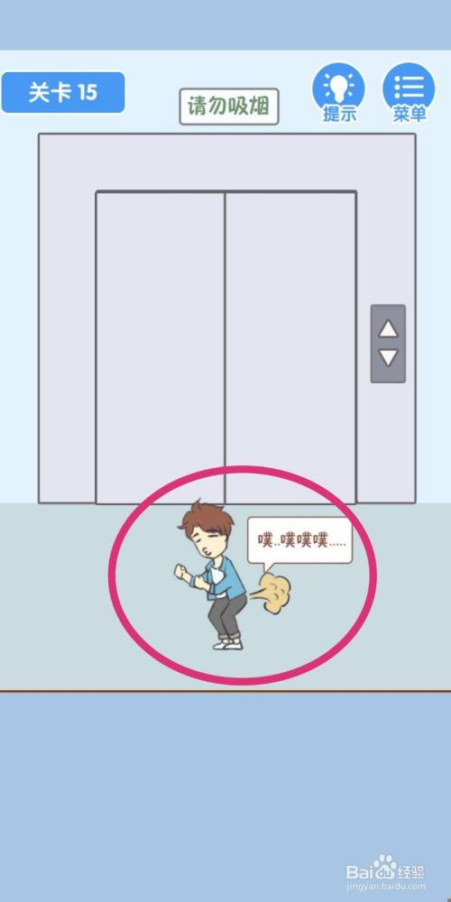 等电梯门封闭后,点击男本家儿放屁,游戏就过关了。