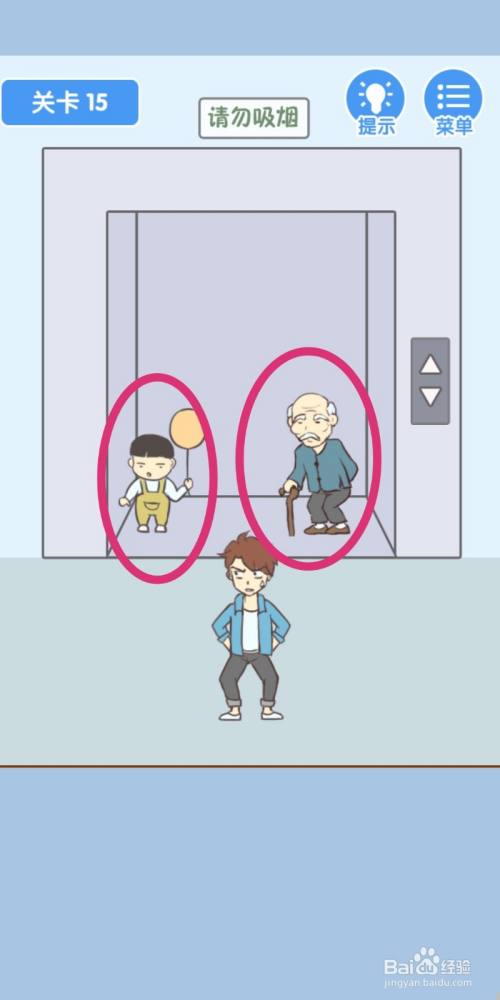 依次点击小孩子和老爷爷,让他们进入电梯分开。