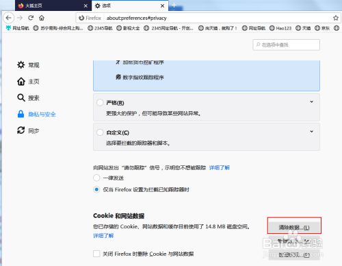 4、在弹出的断根数据窗口中可以对需要断根的内容进行选择,“已缓存收集数据”是必需要选择的,“cookie和网站数据”可以按照本身的需求选择。