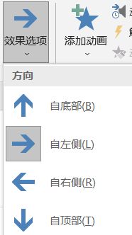 在动画右侧的结果选项中设置自左侧。