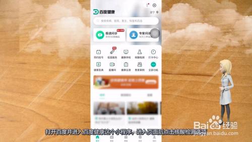 打开百度并进入百度健康这个小程序,进入页面后点击核酸检测选项。