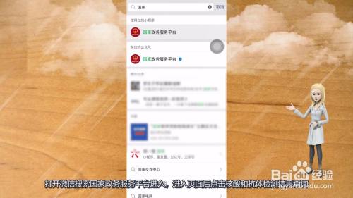 打开微信搜刮国度政务办事平台进入,进入页面后点击核酸和抗体检测成果查询。