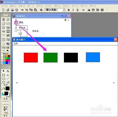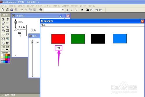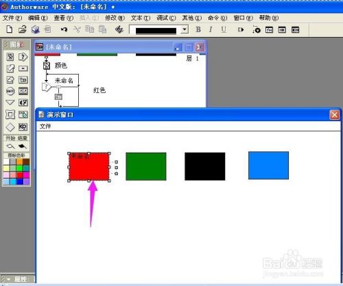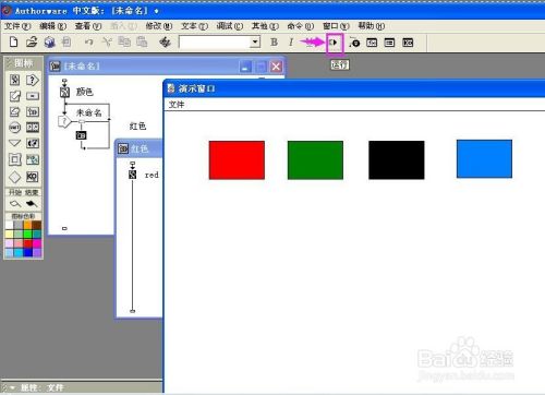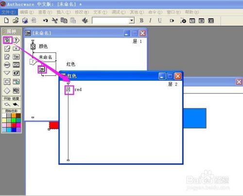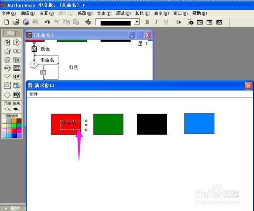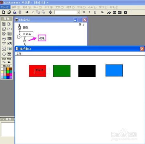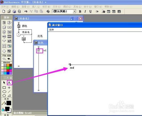双击群组图标,打开一条新的流程线,拉一个显示图标到新的流程线上,定名为red;