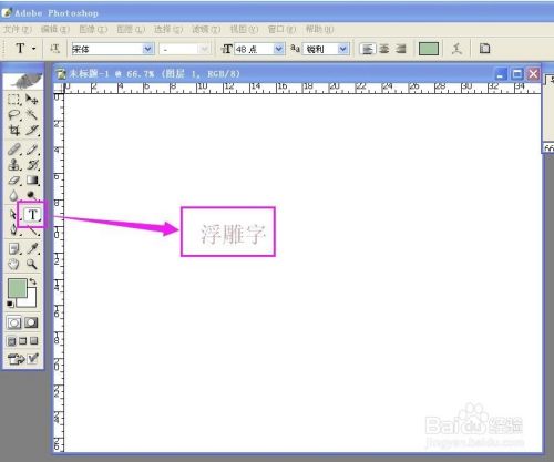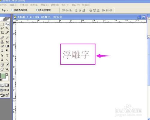 点T文字东西,输入文字“浮雕字”;