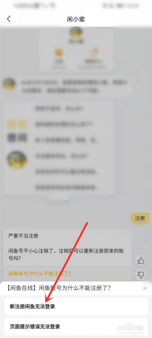 点击【新注册闲鱼无法登录】。