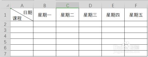 在单位格中填写“日期”,按住(Alt+Enter)键换行,然后输入“课程”,这时发现“日期”并没有在斜线的右上方。
