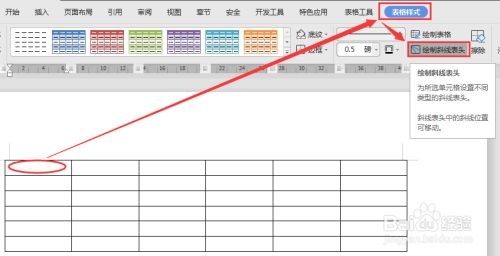 点击此中的任一单位格,点击“表格样式”菜单栏,选“绘制斜线表头”。