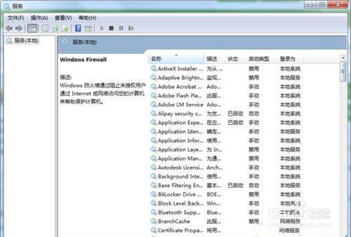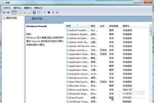 4、进入“办事策略”设置面板后,在右侧“办事当地”里面找到“windows firewall”选项,也就是“电脑防火墙”设置选项。