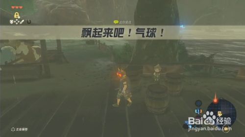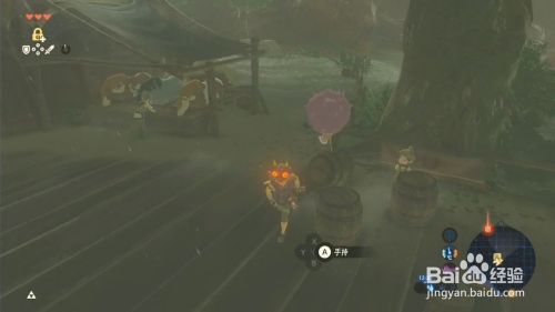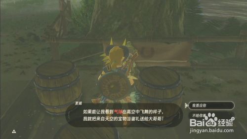 触发使命后,手持八爪怪气球放到木桶上。