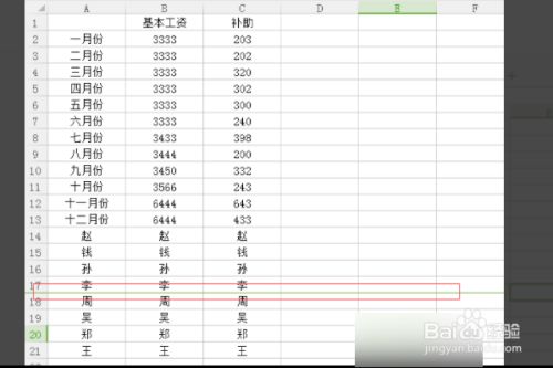 点击过之后,我们来看下,表格中就多了一条横线,窗口冻结已经操作完当作。