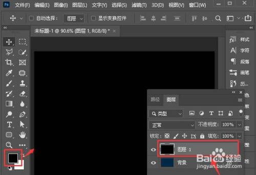 2.随后在该图层上再次新建一个空白图层,并将颜色填充为黑色