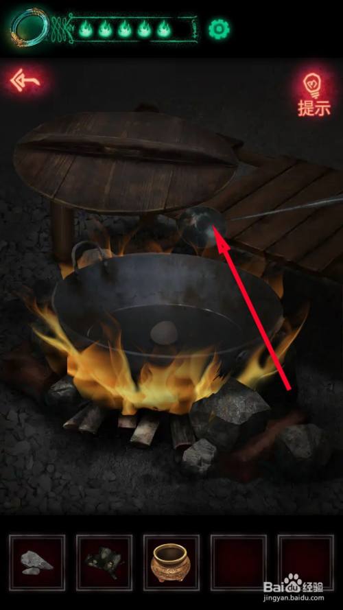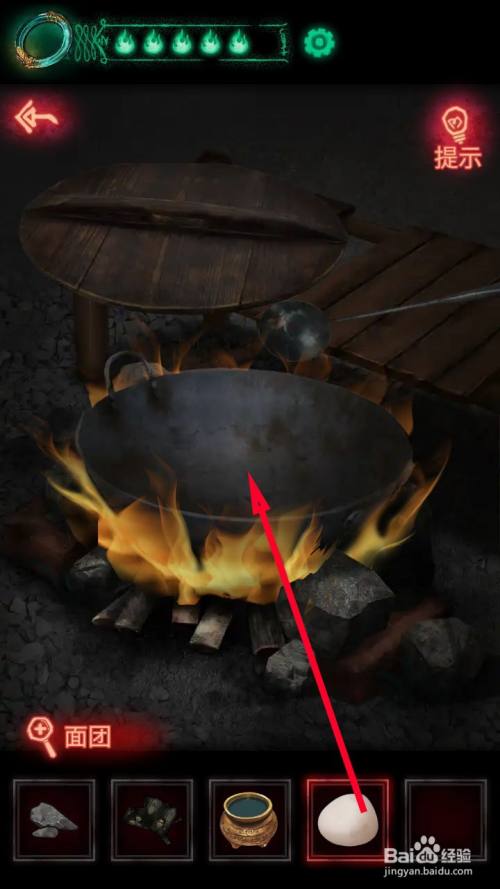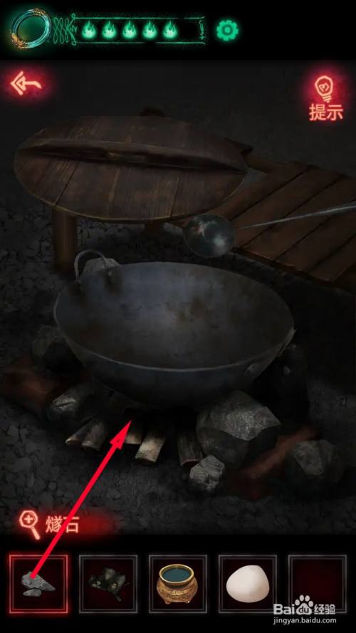 接近后用燧石点燃大锅下面的木料。