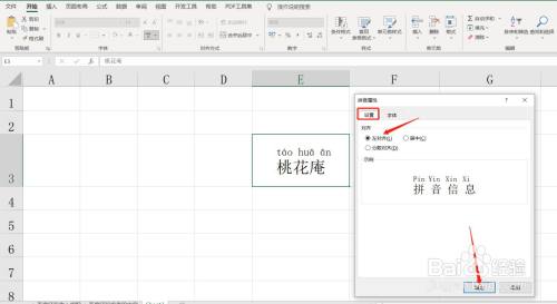 在拼音属性设置中选择对齐体例然后点击“确定”。