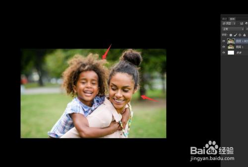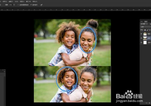 裁剪东西将画布拉大,将照片上下摆放,可以看到清楚的结果。
