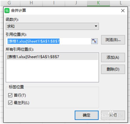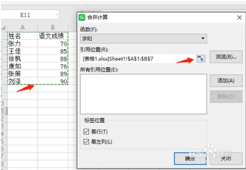点击引用位置右侧的小框,选择表格1的内容。
