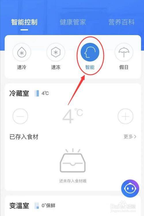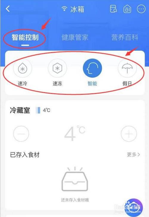 在冰箱界面,可以看到有一个智能节制界面,一般来说我们只需要按照需要设置响应的模式就可以了。