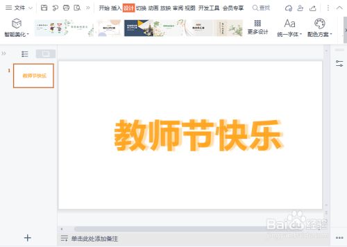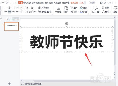 我们打开ppt文档,用文本框输入“教师节欢愉”的文字。