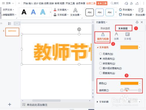 接下来,我们在【文本选项】中点击【填充与轮廓】,然后把颜色设置为橙色。