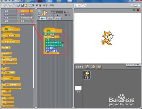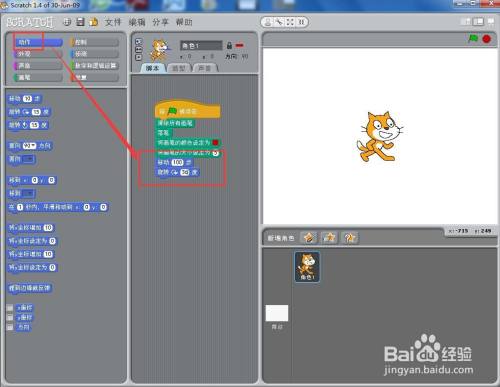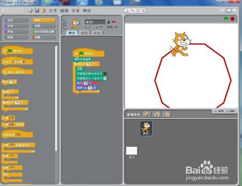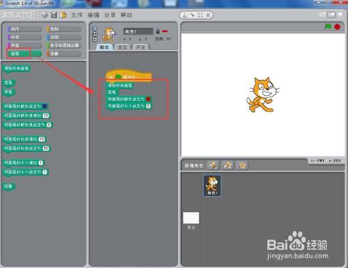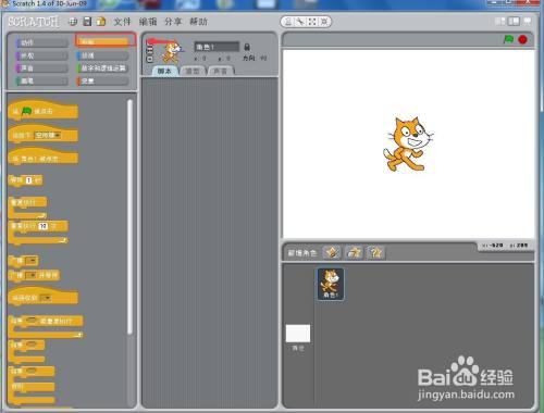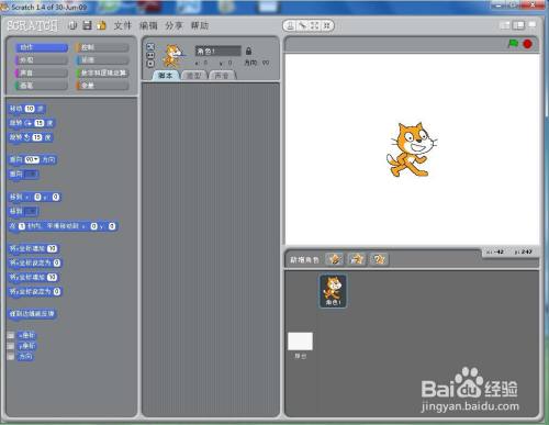 打开scratch1.4,进入其本家儿界面;