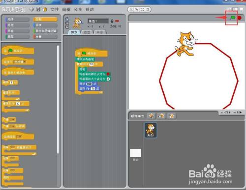 点击绿旗执行程序;
