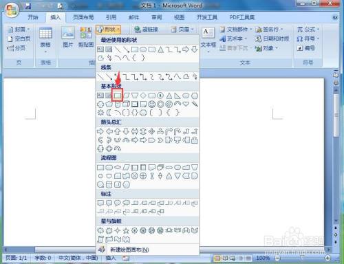 点击插入,选择外形东西中的矩形;