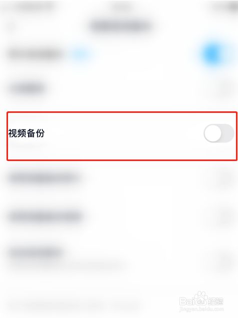 6、“视频备份”后面的圆点变为蓝色即暗示百度网盘开启主动备份视频备份当作功