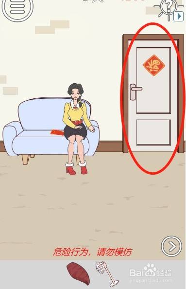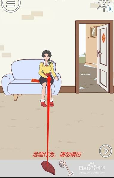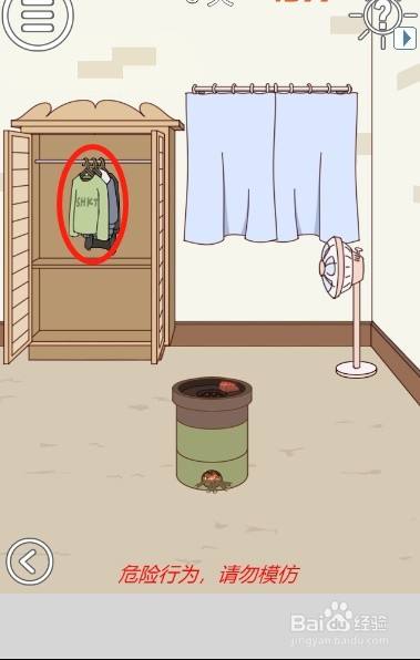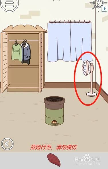 工具/原料联想小新13window10方式/步骤1首先切换到右边的场景然后打开房间里面的衣柜2接着移动衣柜里面的衣服3然后拿到放在衣柜里面的手套4之后戴上手套拿到火炉上面的地瓜5然后拿走放在地上面的电扇6之后回到左边的场景打开房间的大门7然后把地瓜递给妈妈8妈妈跑失落之后,利用电扇吹走有毒气体9最后拿到沙发上面的压岁钱就可以过关啦END