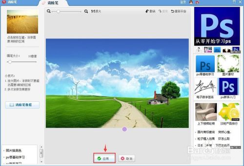 按照水印的大小矫捷设置好画笔的大小,今朝我们选择的是10像素;