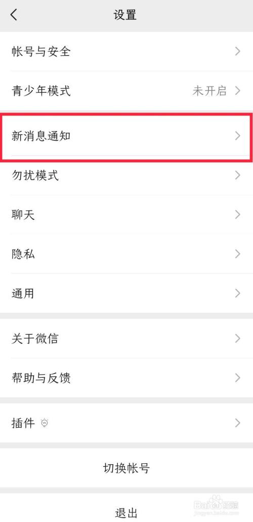打开如下图界面,选择界面中的新动静通知选项,点击打开