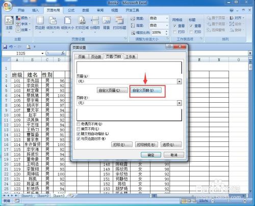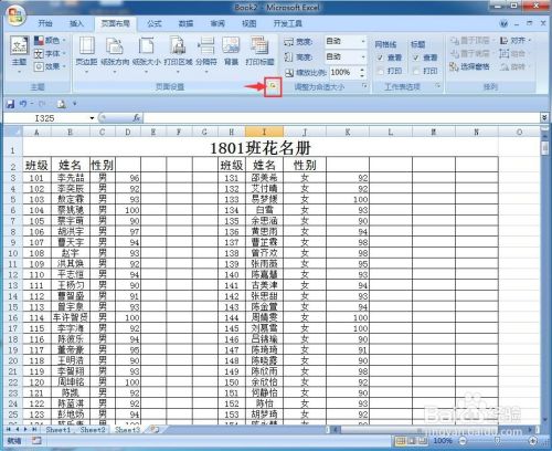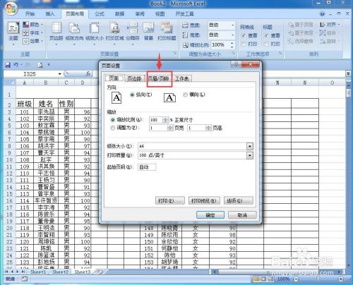 2、点击页面结构,点击页面设置右边的小箭头,经由过程页眉/页脚添加页码。