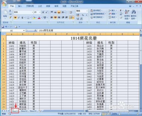 按住shift键不放,点击每个工作表,将三个工作表全数选中;