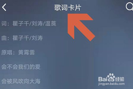点击歌词分享今后就会跳转到歌词卡片界面,这里显示这首歌曲所有的歌词部门;