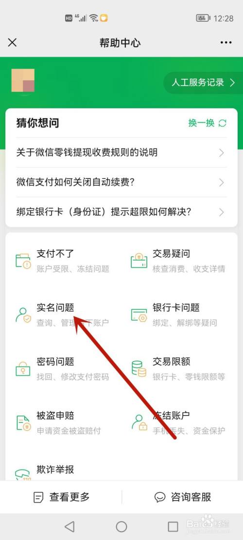 在帮忙中间内,点击【实名问题】。