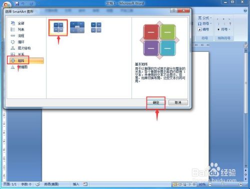 - 在插入菜单中点击SmartArt,选择根基矩阵。