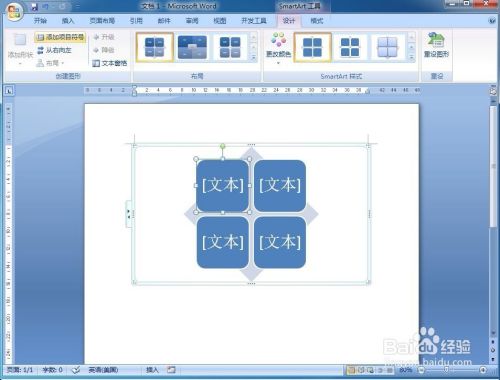 1、打开word,点击插入菜单,选择SmartArt东西;
