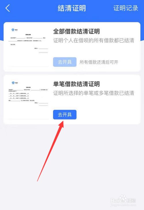 选择【单笔告贷结清证实】,然后点击【去开具】。