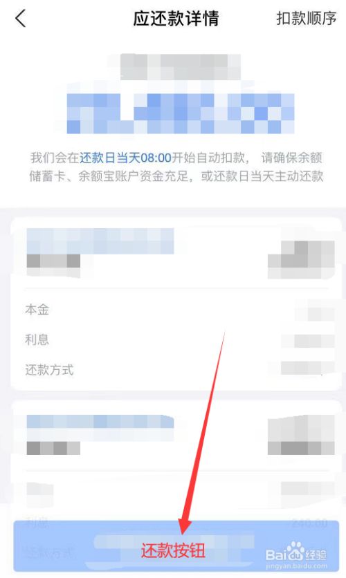 在应还条目详情里,点击还条目按钮还失落借呗过期的告贷。