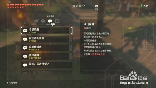 工具/原料SwitchLiteSwitch11塞尔达传说田野之息1.3.1方式/步骤1使命在沃托里村接取2达到村子 在酒店对面的房子门口可以碰到npc对话触发使命3使命需要帮忙npc筹办 生命海螺和山羊黄油4黄油在商铺就可以采办 海螺在岸边可以捡到5筹办好后 交给npc 就可以获得海鲜杂烩饭 完当作使命END
