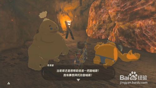 工具/原料SwitchLiteSwitch11塞尔达传说田野之息1.3.1方式/步骤1使命触发在鼓隆城2到村子和屋里的npc对话触发3使命先要找到他的弟弟 位置就在村子南方的马尔鼓坑道4在坑道里可以碰到npc弟弟 对话后需要到坑道最下方找到石头肉拿过来5途中有良多怪物要先杀失落 到坑道最下面就可以找到 在搬运途中有良多滚石 注重遁藏6把石头运到npc那 就可以完当作使命 解锁克哈拉玛神庙 END