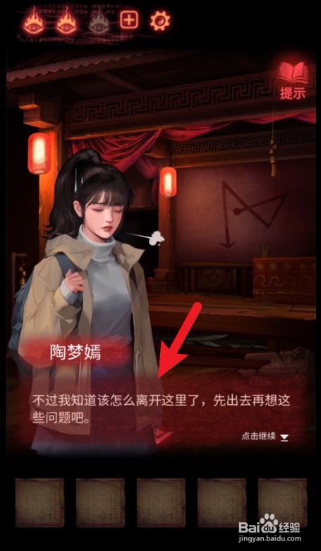 工具/原料iPhone12iOS14.4纸嫁衣2方式/步骤1首先打开游戏点击进入;2以陶梦嫣的视角起头走剧情;3然后把石门上的文字移动当作阴天阳地,即可获得新的线索;4进入房间后在电视上看到数字15,在桌子上的簿本中看到260;5按照数字线索摆列当作密码锁,打开柜子上的锁获得道具;6最后走和大贤巫的剧情对话,并打开门即可分开。END